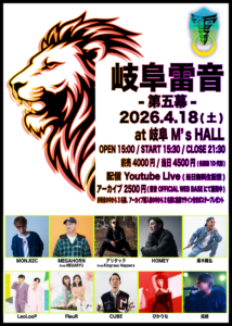 【出演】MONJI2C / MEGAHORN from MEGARYU / アリタック from Kingrass Hoppers / HOMEY / 黒木隆弘 / LeoLooP / FleuR / CUBE / ぴかりな / 拓朗